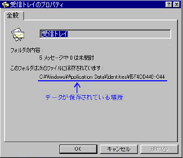 ※Outlook Express の場合、フォルダの上でマウスの右ボタンをクリックし、「プロパティ」を選択。