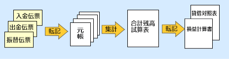 入金・出金・振替伝票さえ入力すれば、「元帳」「合計残高試算表」「貸借対照表/損益計算書」「決算書」は、すべて自動で作成されるのです。