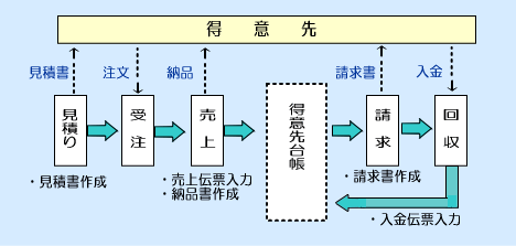 販売管理は企業の基幹業務となります。売上〜請求〜売掛金回収と一連の処理が連動し、正統な処理ができるように出来ています。売上伝票と入金伝票を入力するだけで、全ての処理・資料作成ができるという便利さです。
