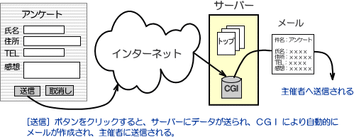 上記のような機能を利用すると、ただ一方的に情報発信するだけのホームページではなく、ユーザーから情報を収集したり、注文を受け付けたり、情報交換など双方向のやり取りを実現することが出来ます。