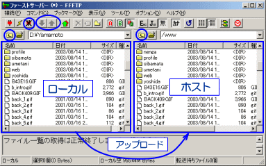 ●ローカルからホストへのファイル転送を「アップロード」、ホストからローカルへの