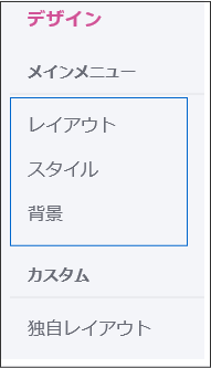 Jimdo のデザインに関する設定は、左図のように3つのメニューになります。