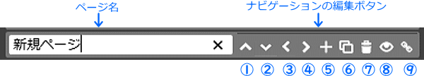 新規ページの作成やページ削除は、ナビゲーションで操作します。レイアウトを選択した時点で、すでに数ページのページは作成済みです。編集して使っても良いし、一旦ページを削除して新規ページ作成しても構いません。ここでは、ナビゲーションの編集方法を説明します。