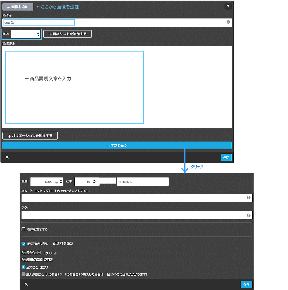 ※同商品でも色やサイズのバリエーションがある場合は、[+バリエーションを追加する]で登録できます。