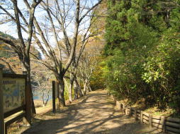 雄大な山々に囲まれ、自然遊歩道を散策していると奥多摩湖が見えます。