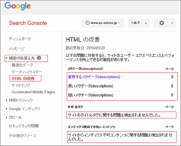 Google Search Console を起動し、HTMLの改善点を確認しましょう。