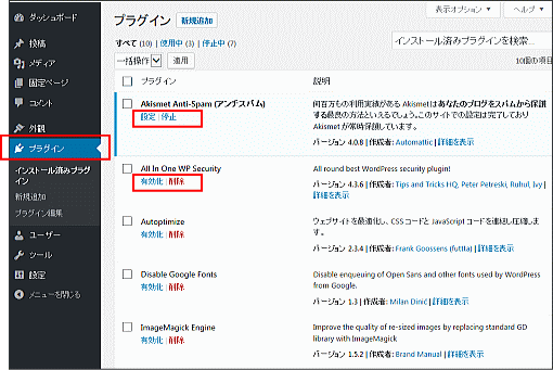 私は WordPressを利用し始めた頃、ある記事に対するスパムコメント(英語)が非常に多く困っていました。そこで、このプラグインををインストールして[有効化]したところ、スパムコメントはなくなりました。コメント機能を利用する方には利用をお勧めします。 ただ、「Akismet」を有効化する場合には「Akismetアカウントを設定」「APIキーを取得」の操作が必要です。画面の説明を見ながら操作を行ってください。