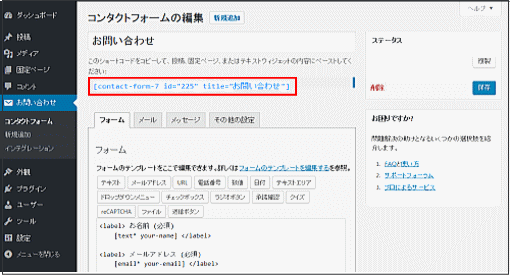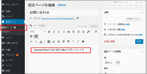 プラグインも利用したいので、お問い合わせページを作成しました。