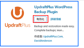 「UpdraftPlus」を導入するため、次の手順でインストールと有効化を行います。