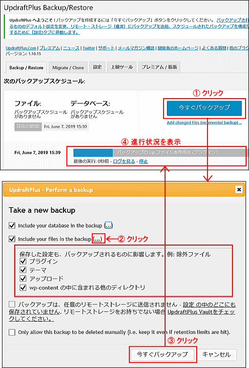 ※ UpdraftPlus-Backup/Restore のバージョンは、1.16.15 です。